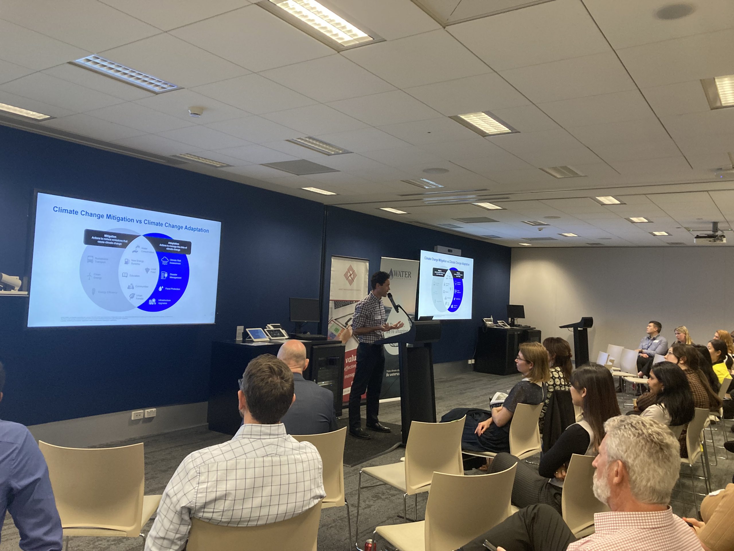 We were privileged to hear from three exceptional speakers. Danielle Higgs, Manager of Asset Management System & Risk at Water Corporation, kicked off the session with a presentation on how climate change is already affecting water services across Western Australia. She highlighted the Water Corporation’s proactive steps in assessing climate risks and enhancing contingency plans to ensure future water service resilience.