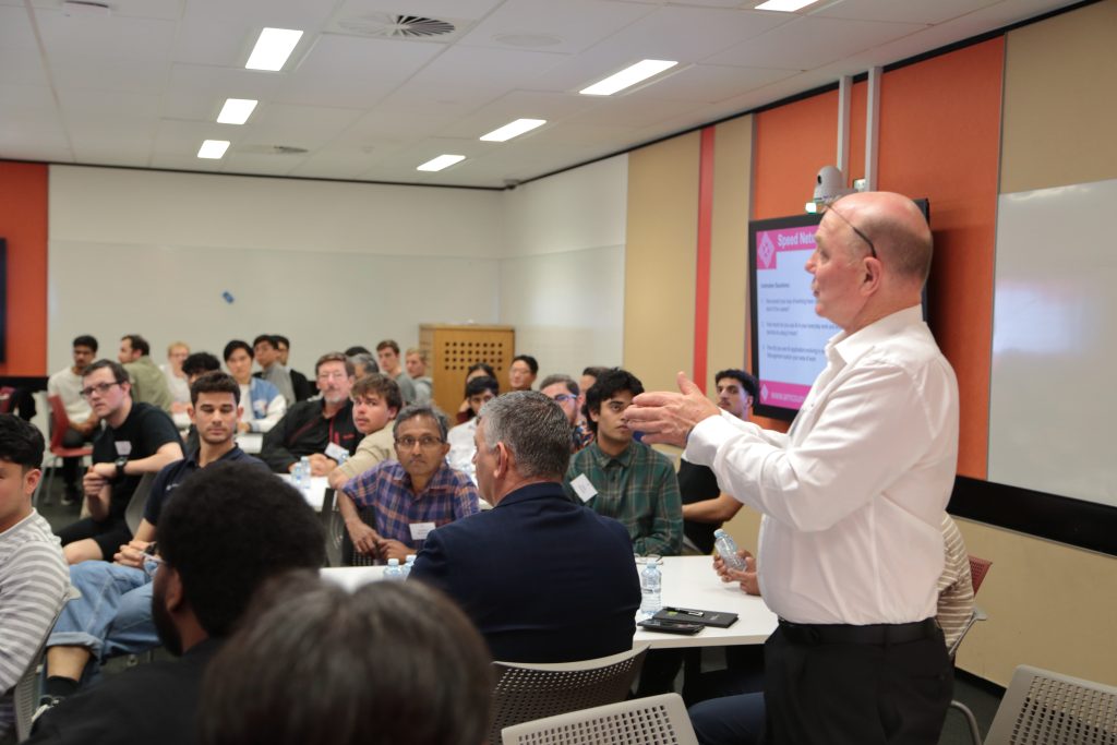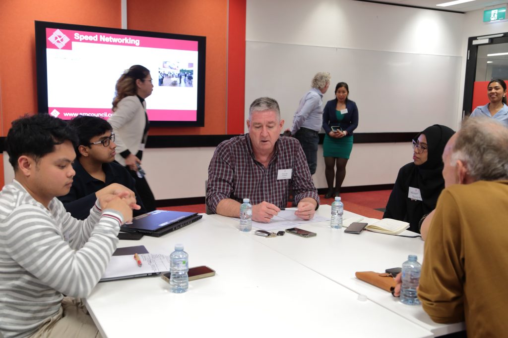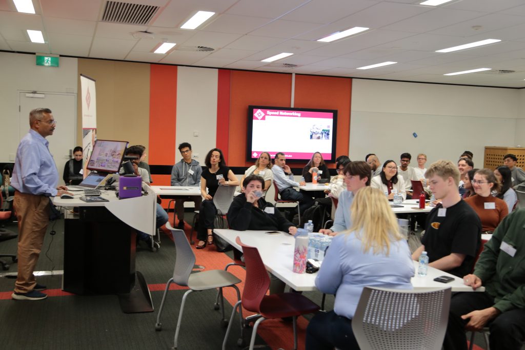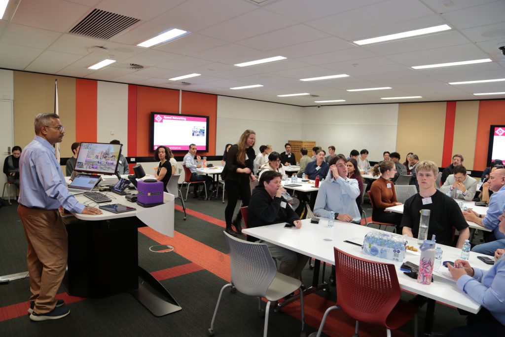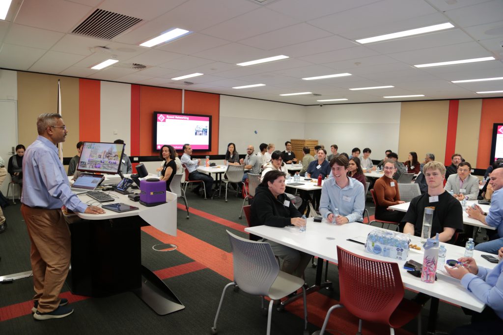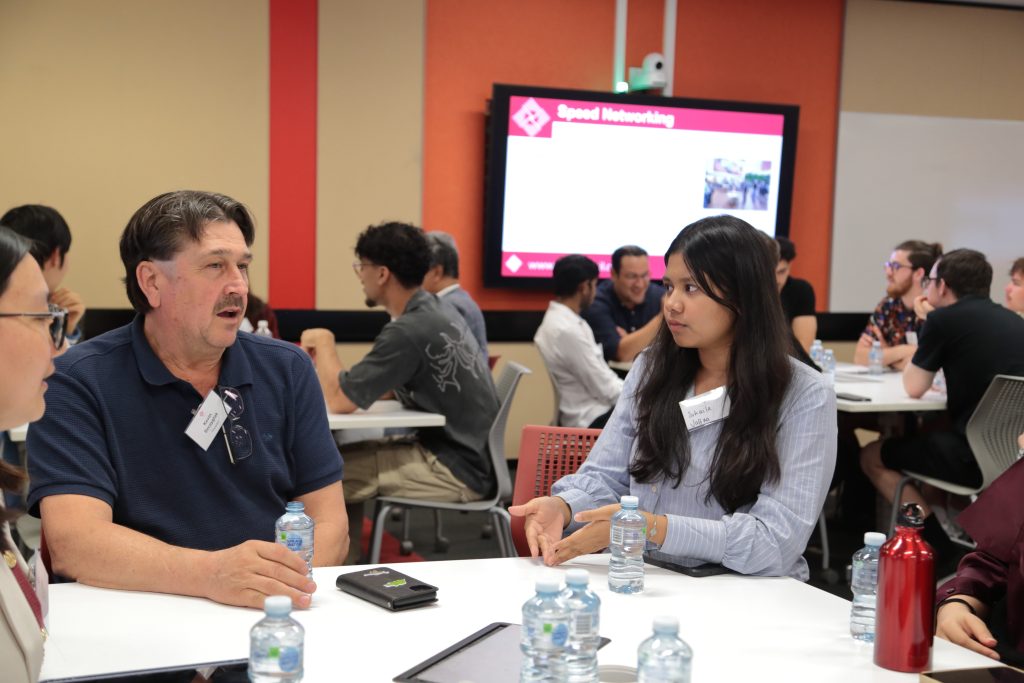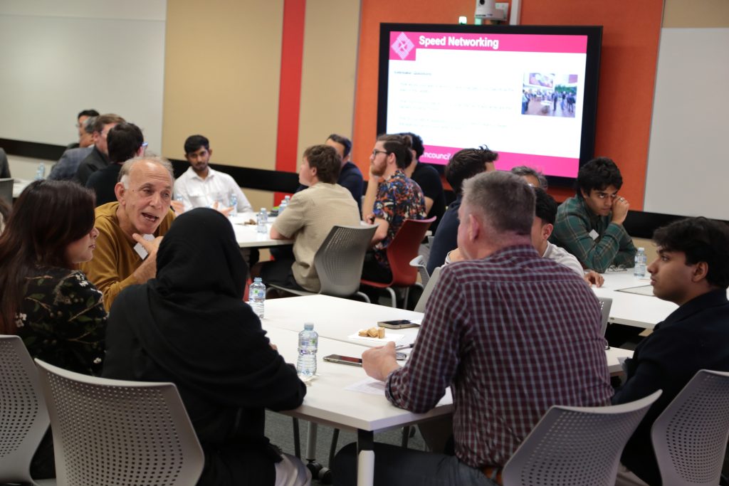- Roy Choudhury facilitating a dynamic speed networking session to help emerging professionals connect.
