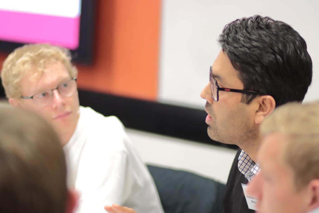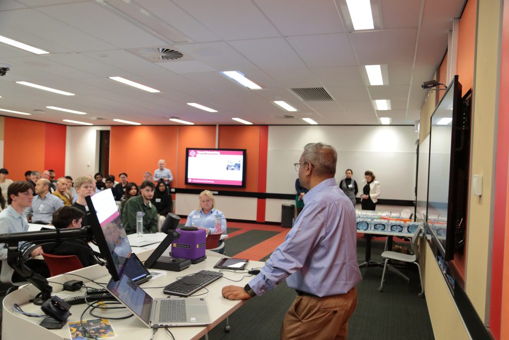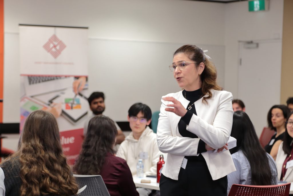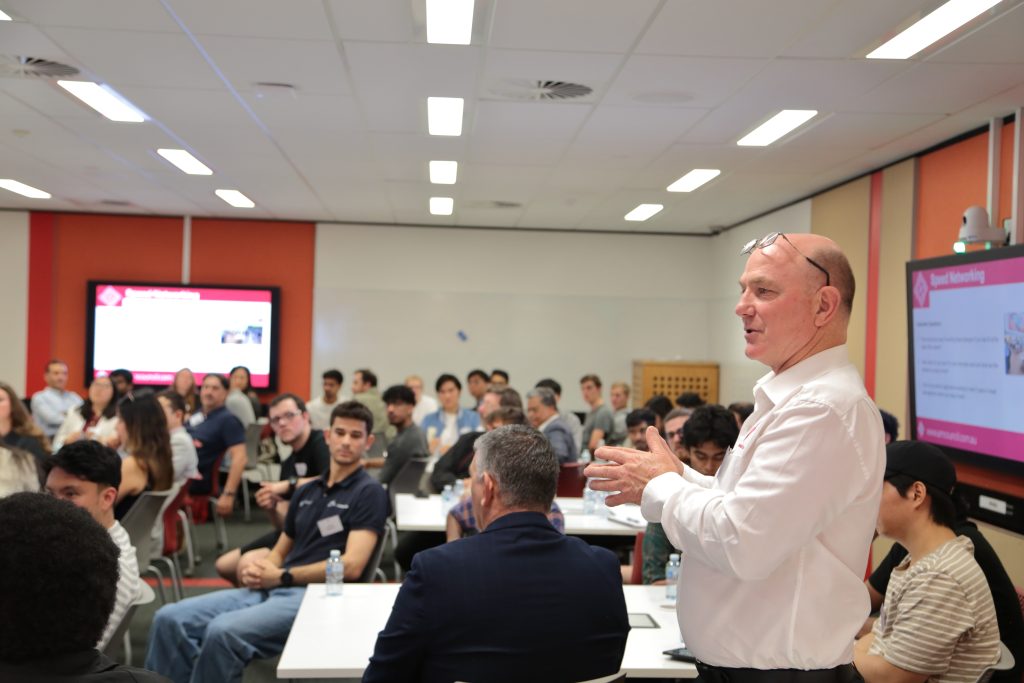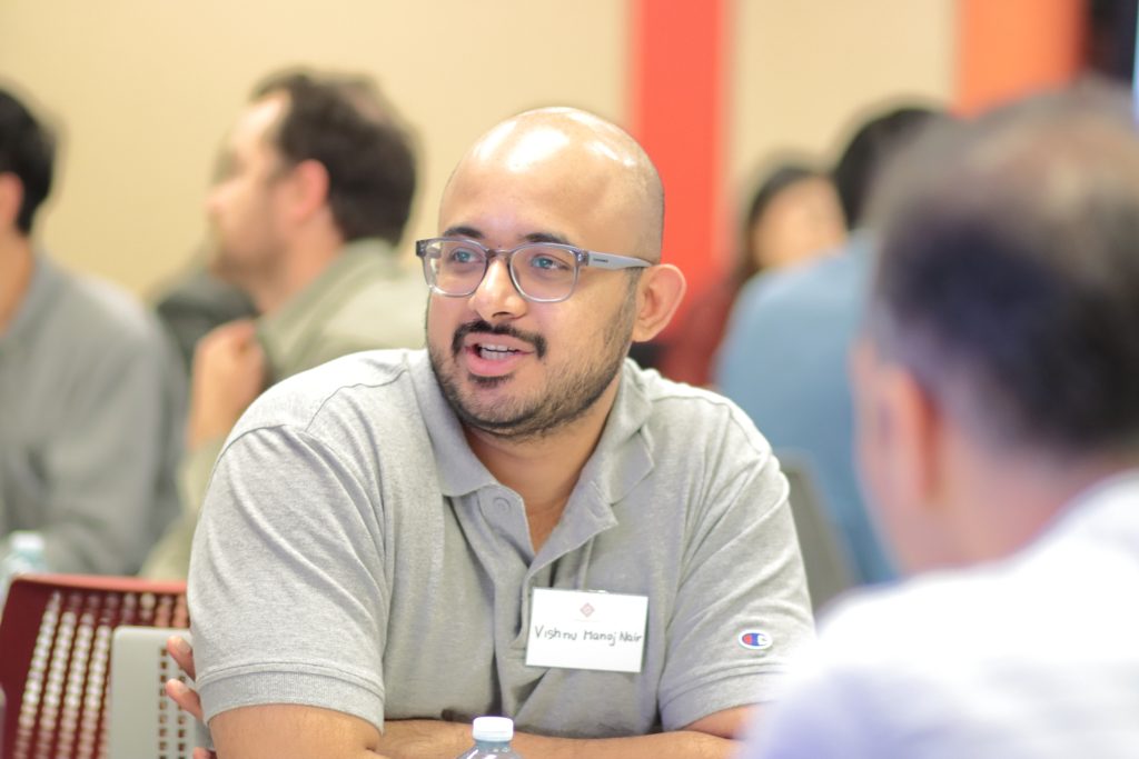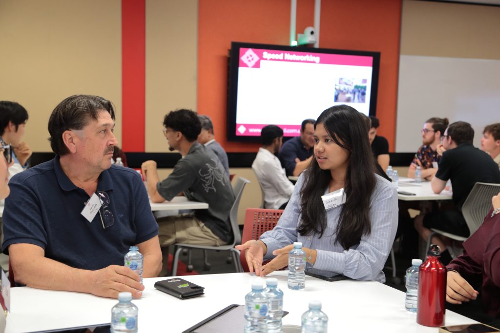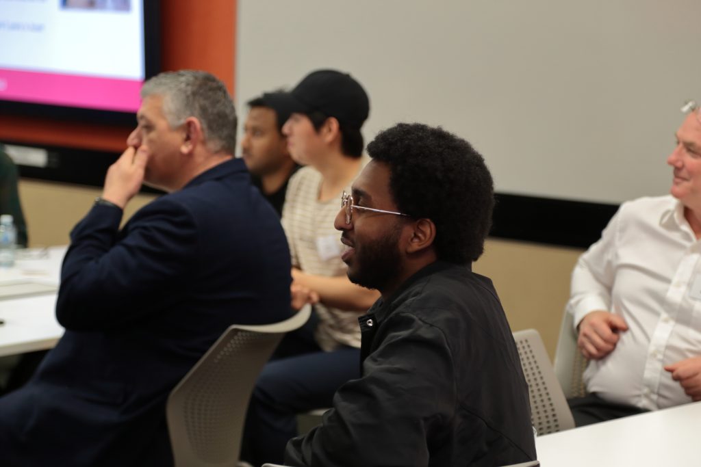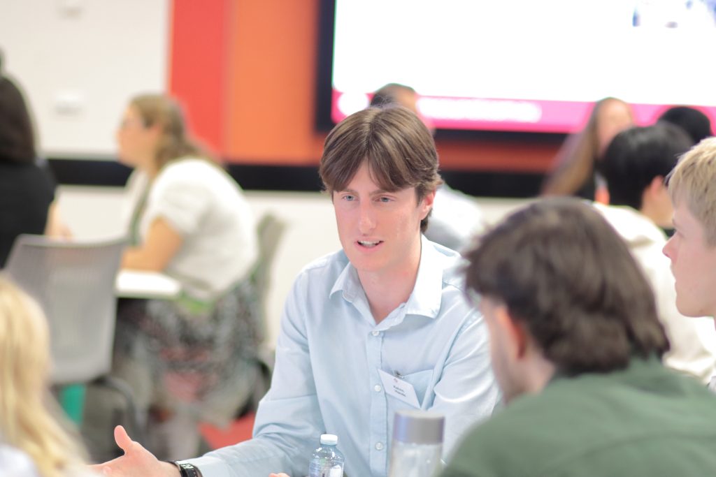 - Roy Choudhury facilitating a dynamic speed networking session to help emerging professionals connect.