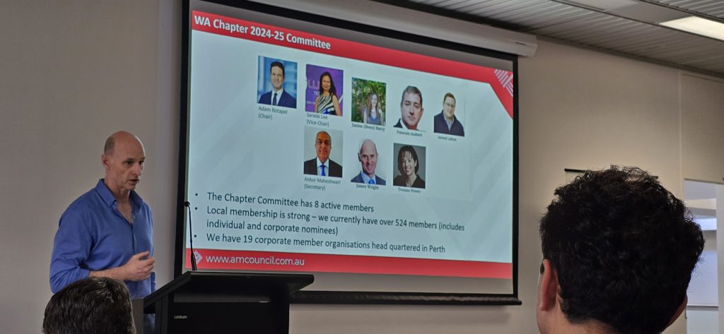 Last night, the Asset Management Council’s Perth Chapter hosted an engaging technical meet at the State Library of WA, showcasing some of the standout presentations from the 2024 AMPEAK National Conference. This event brought together local professionals to delve into the latest trends and innovations in asset management, fostering a vibrant exchange of ideas and best practices.